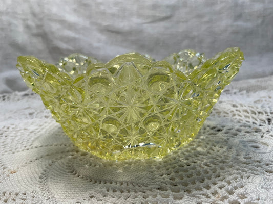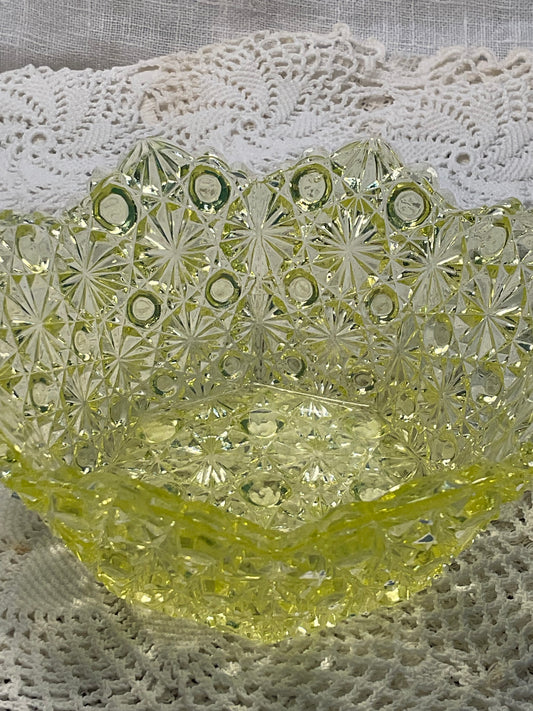 Vaseline Daisy & Button 5" Octagon Berry Bowl No. 88 by Elson Glass ***Cracked